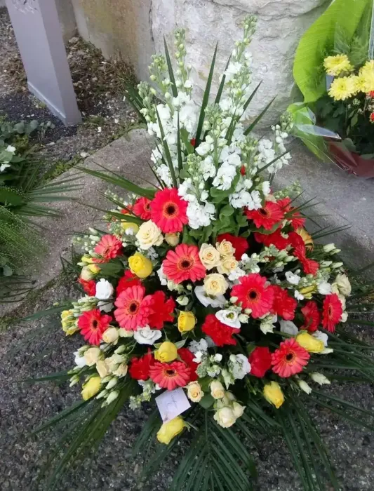 Réalisation minutieuse de votre tribut commémoratif avec des fleurs fraîches.